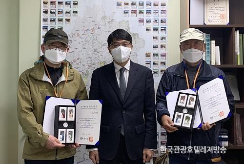 [È£ÅÚ°ü±¤·¹Á®½Å¹®´º½º=Á¤ÁöÀ± ±âÀÚ] °æ±âµµ ¿Ü°û 860km¸¦ ¿¬°áÇÑ µµº¸±æ ¡®°æ±âµÑ·¹±æ¡¯ÀÇ ¿ÏÁÖÀÚ°¡ Àü¸é °³Åë ÈÄ Ã³À½À¸·Î ³ª¿Ô½À´Ï´Ù. À̼®¹ü °æ±âµµ ¹®È­Ã¼À°°ü±¤±¹ÀåÀº ÃÖ±Ù µµÃ»¿¡¼­ °æ±âµÑ·¹±æ ¿ÏÁÖÀÚ ¼±¿ìÁ¤ ¾¾(73‧¼ö¿ø), À̰üÇ¥ ¾¾(65‧ÃæºÏ Á¦Ãµ)¿¡°Ô Á÷Á¢ ¿ÏÁÖ ÀÎÁõ¼­¿Í ±â³äǰÀ» Àü´ÞÇß½À´Ï´Ù.
